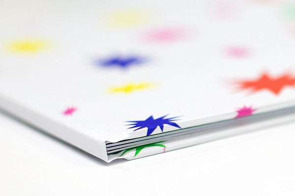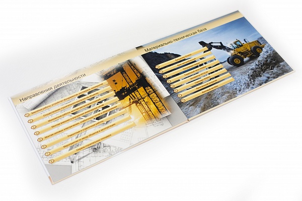 Внутренний блок книги организован цельными разворотами, книга раскрывается на 180 градусов.