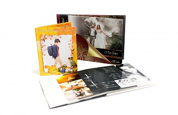 Основой для изготовления обложек книг служит переплетный обложечный картон. Лазерная фотопечать на оборудовании NORITSU 3701(Япония), фотобумага FG Kodak-180гр\м2, глянцевая или матовая ламинация страниц, термоклей.